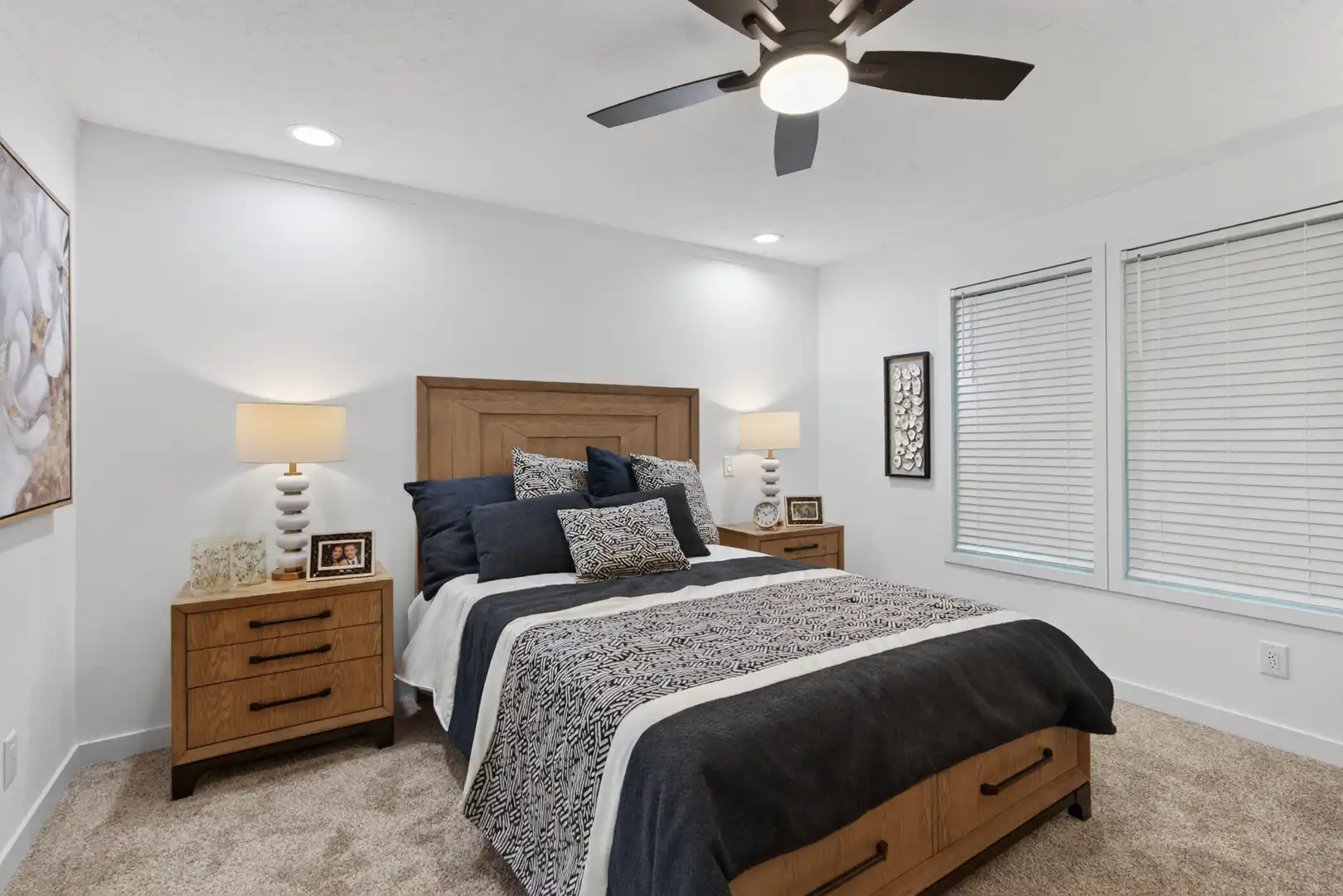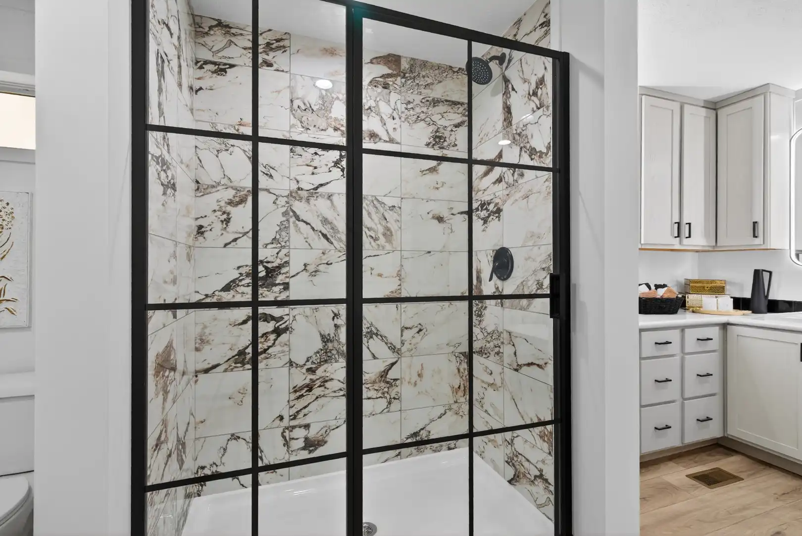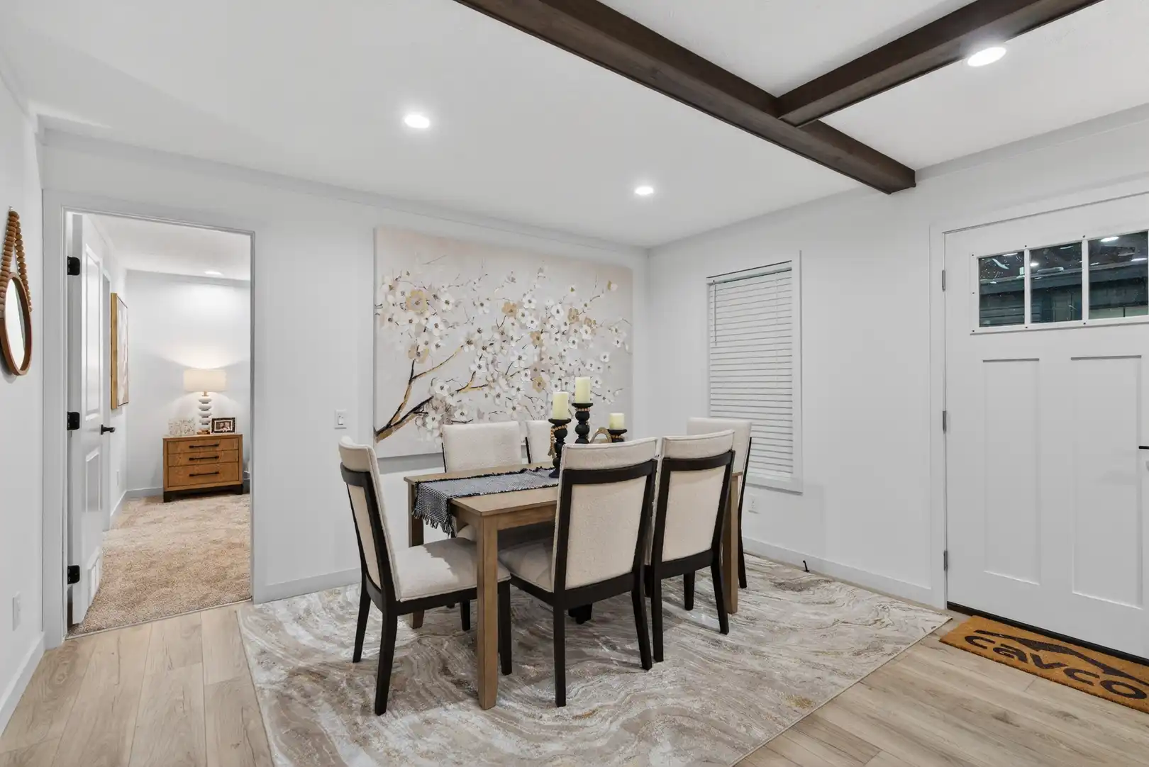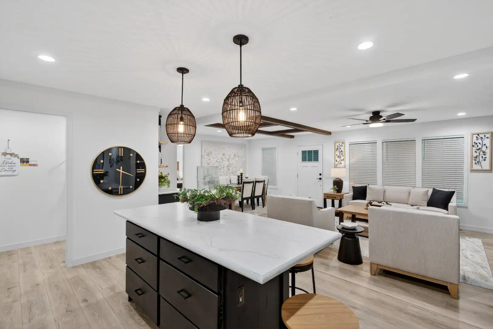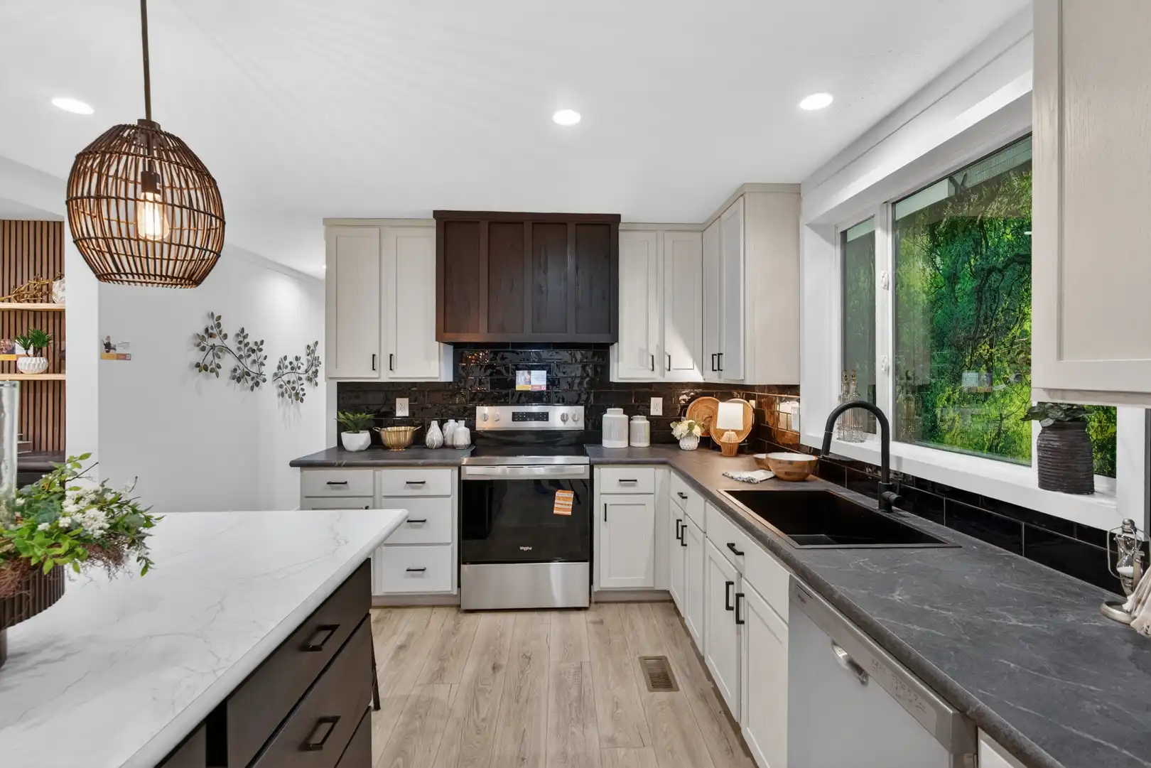 Aura 28664A / Available nationwide, The Aura by Cavco redefines everyday living with a curated balance of comfort, style and purpose. Bold black exterior tones accented with warm browns and cool greys create a striking first impression, while finished drywall and soft-close cabinetry bring a sense of calm precision inside. The kitchen, complete with black appliances, a full-wall ceramic tile backsplash and a large walk-in pantry, anchors the home in effortless function. A built-in entertainment center with an acoustic wall accent adds a touch of artistry to the main living space. With four bedrooms, three baths and walk-in closets throughout, The Aura is built around real life – where refined details, thoughtful design and everyday ease come standard.